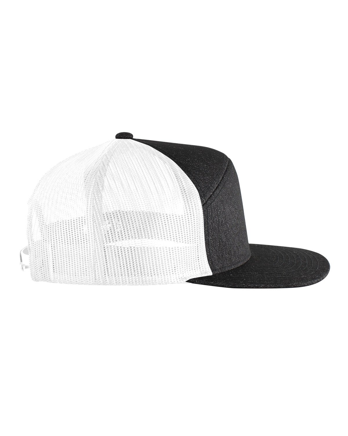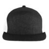 Polyester-rayon blend Melange heather, trucker mesh; 6-panel, structured, full-profile, arch crown; Eight-row stitching on shape-able flat bill; Hard buckram backed front panels; Matching undervisor; Plastic adjustable closure