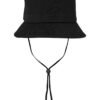 Cotton ripstop; Cotton rope chin strap with plastic adjuster and stopper; 0.75″ H self-fabric crown band; Matching sewn eyelets