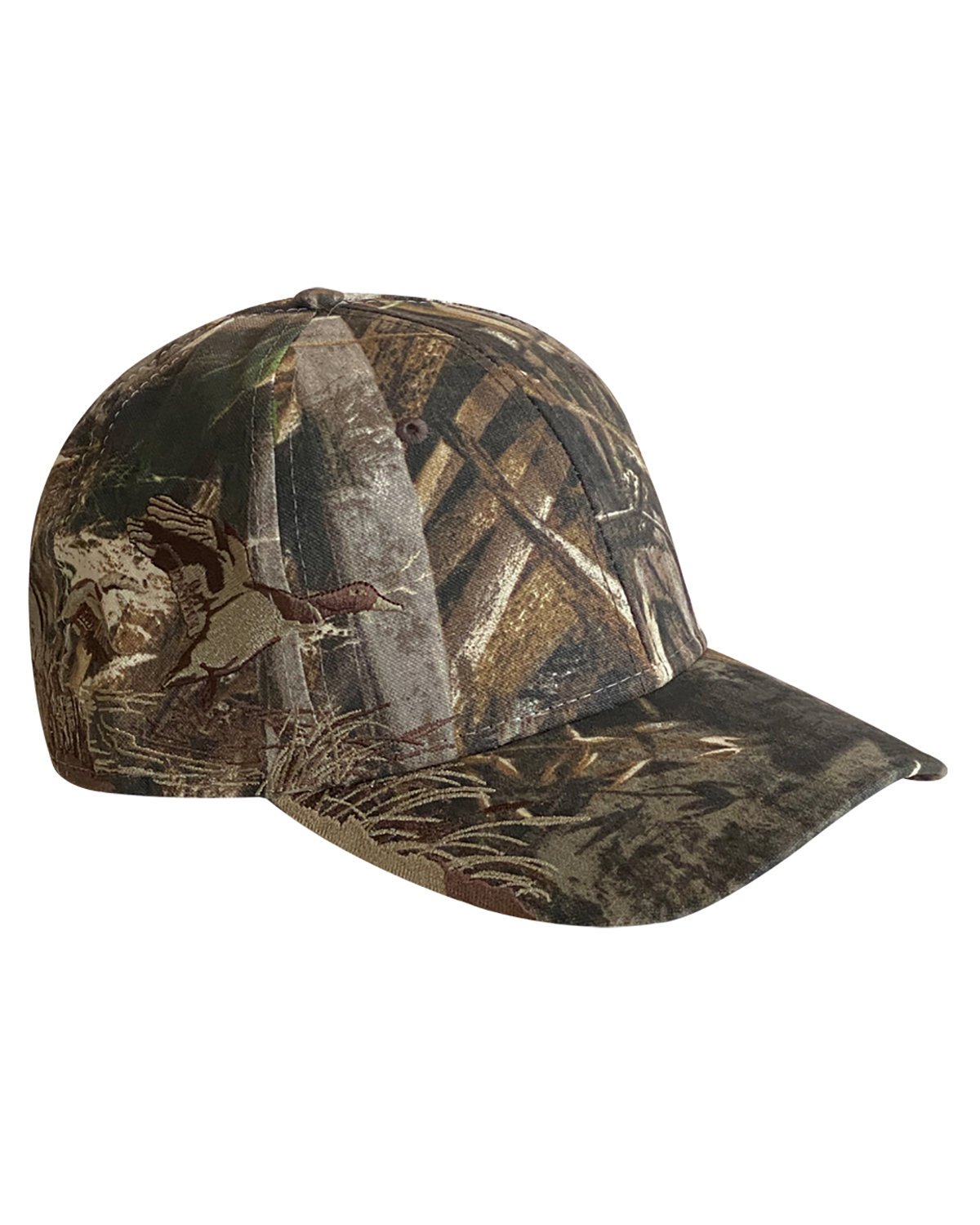 100% cotton, brushed chino twill; Structured front; Precurved visor; Hook and loop backstrap; Detailed embroidered wildlife scene on right side; DRI DUCK embossed leather patch left of back vent