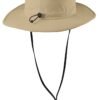 Trail-ready this high-performance essential features No Fly Zone insect repellant technology UPF 30+ sun protection a concealable sun flap and a moisture-wicking sweatband. The foam brim keeps it afloat in water. Fabric: 75/25 poly/nylon ripstop Features: Adjustable cord at crown clip-on and adjustable drawcordSpecially treated products may be subject to additional requirements. Please check with your local authorities for any additional requirements that may apply.