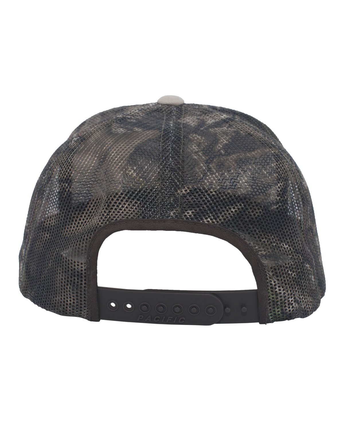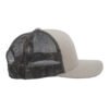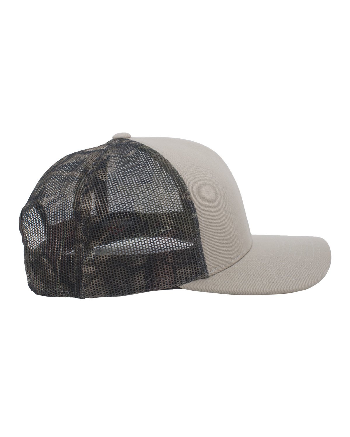 Nylon blend, sublimated camo front panels, trucker mesh; 6-panel, structured, mid-profile; Eight-row stitching on curved visor; Hard buckram backed front panels; Contrast undervisor; Plastic adjustable closure