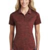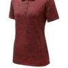 Our color-locking polo has a soft hand wicks moisture resists snags and is energized with an allover heather pattern. 4.1-ounce 100% polyester jersey with PosiCharge technology Removable tag for comfort and relabeling Self-fabric collar Taped neck 4-button placket with dyed-to-match buttons Princess seams Set-in open hem sleeves Curved drop tail hem