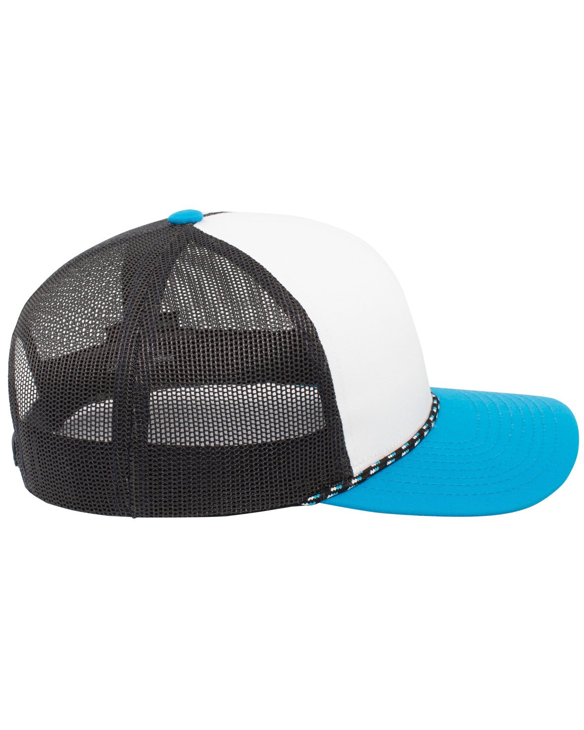 Cotton blend, trucker mesh; 6-panel, mid-profile, pro model; Features a braid detail on visor; Pro-stitched finish; Curved visor; Snapback closure