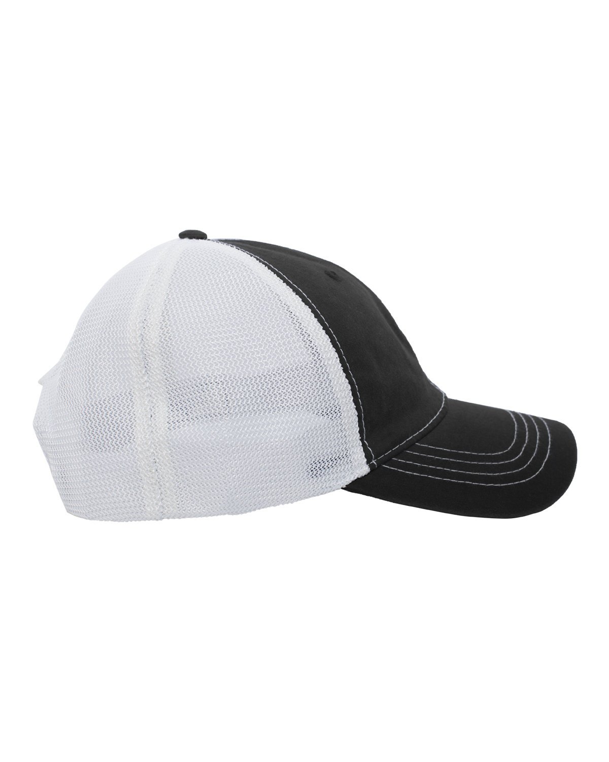 Cotton blend, soft trucker mesh; 6-panel, unstructured, low-profile; Four-row of contrast stitching on curved visor; Unstructured crown; Matching undervisor; Plastic adjustable closure