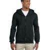 9.5 oz., 50% cotton, 50% polyester; Oxford is 49% cotton; 51% polyester; Made with sustainably sourced USA grown cotton; High-stitch density for a smoother printing canvas; virtually pill-free; Double-ply hood with grommets, matching drawcord, aluminum zipper; Double-needle coverseaming on neck, armholes and waistband; 1×1 ribbed cuffs and waistband with spandex; split pouch pockets; Concealed seam on cuffs; seamless body with set-in sleeves; Jerzees styles are manufactured using sustainable protocols which are measured and reported annually by Fruit of the Loom, Inc.; Jerzees styles are manufactured with the commitment to enriching lives for people and communities which is measured and reported annually by Fruit of the Loom, Inc.