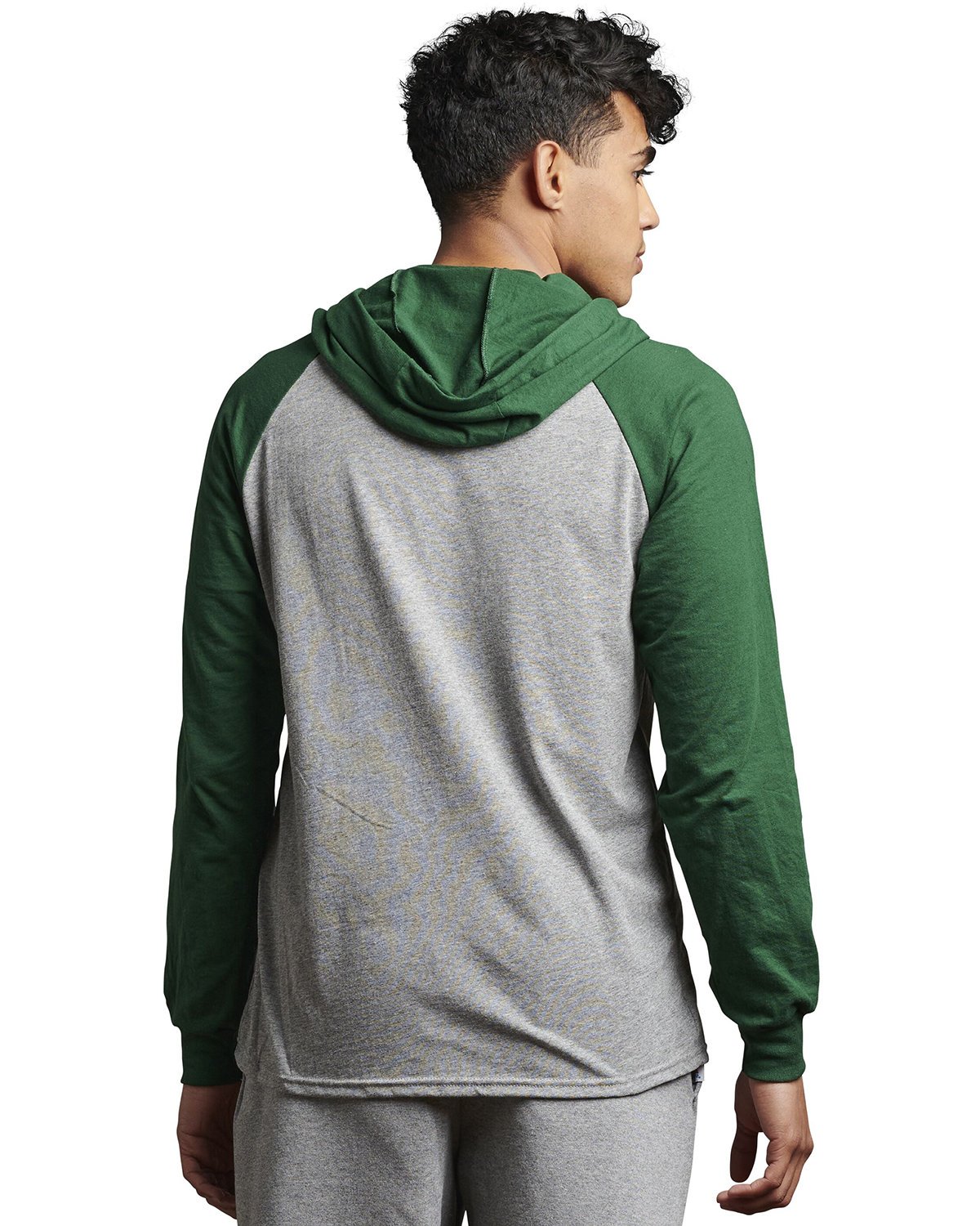 4.75 oz., 60% cotton, 40% polyester; Ash: 50/50; Oxford: 47/53; Pre-shrunk jersey, 30 singles; Dri-Power® moisture-wicking technology; Odor-fighting properties, UPF 30+ protection; Oxford back neck tape on all colors; Made with sustainably sourced USA grown cotton ; Premium softness for all day wear; Tagless label; Contrast raglan sleeves and hood ; Front pouch pocket