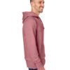 7 oz., 55% cotton, 45% polyester burnout; Acid-washed with silicone finish; Flatlock stitching throughout; Raw-edge seams; Hood with dyed-to-match drawcord; Raglan sleeves and v-notch collar; Front pouch pocket