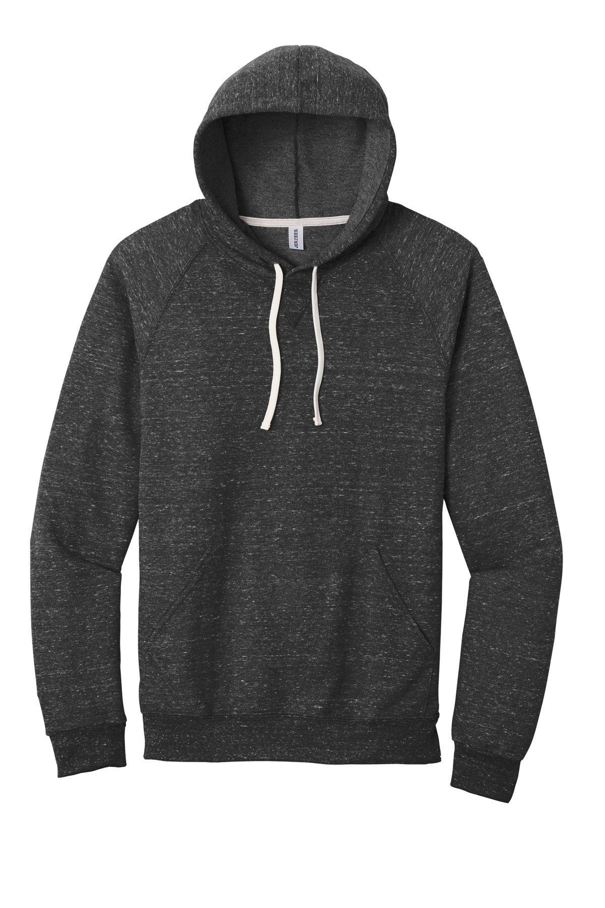 7.2-ounce 66/34 poly/ring spun cotton French terry Classic fit Tear-away label V-notch detail Natural back neck tape Flat drawcord Raglan sleeves Kangaroo pocket Stretch collar cuffs and hem