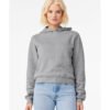 8 oz., 32 singles; 52% Airlume combed and ring-spun cotton, 48% polyester fleece; Athletic Heather 90% Airlume combed and ring-spun cotton, 10% poly fleece; Semi set-in sleeves; Drawcord-free design; Versatile, mid-length silhouette; Tear away label