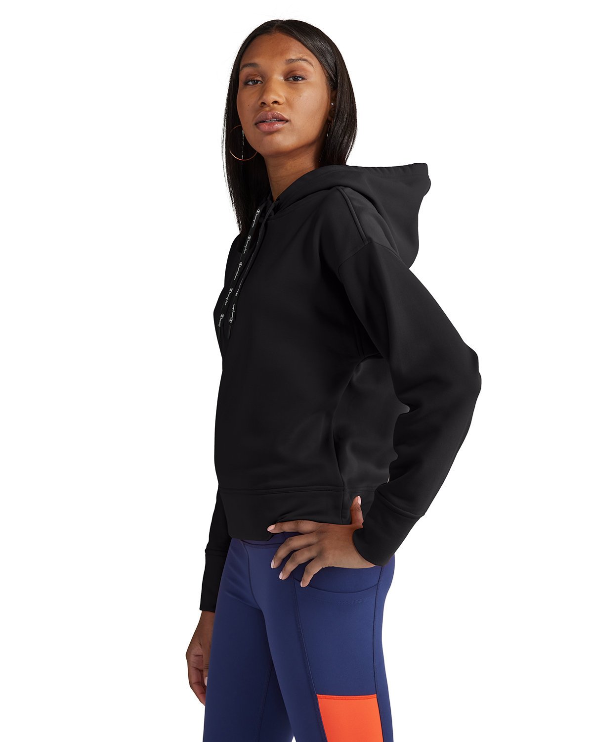 5.5 oz., 95% recycled polyester, 5% spandex; Crossover single-ply hood; Champion logo black drawcord; Single needle stitching at armhole and neck; Double-needle stitching at cuffs and waistband; Self-fabric cuffs and waistband; Champion “C” patch at left sleeve; Heat sealed neck label; A- list status from CDP (Carbon Disclosure Project) ; Energy Star Partner of the Year (14 consecutive years); Every piece of Champion apparel purchased from alphabroder qualifies for Hanes4Education