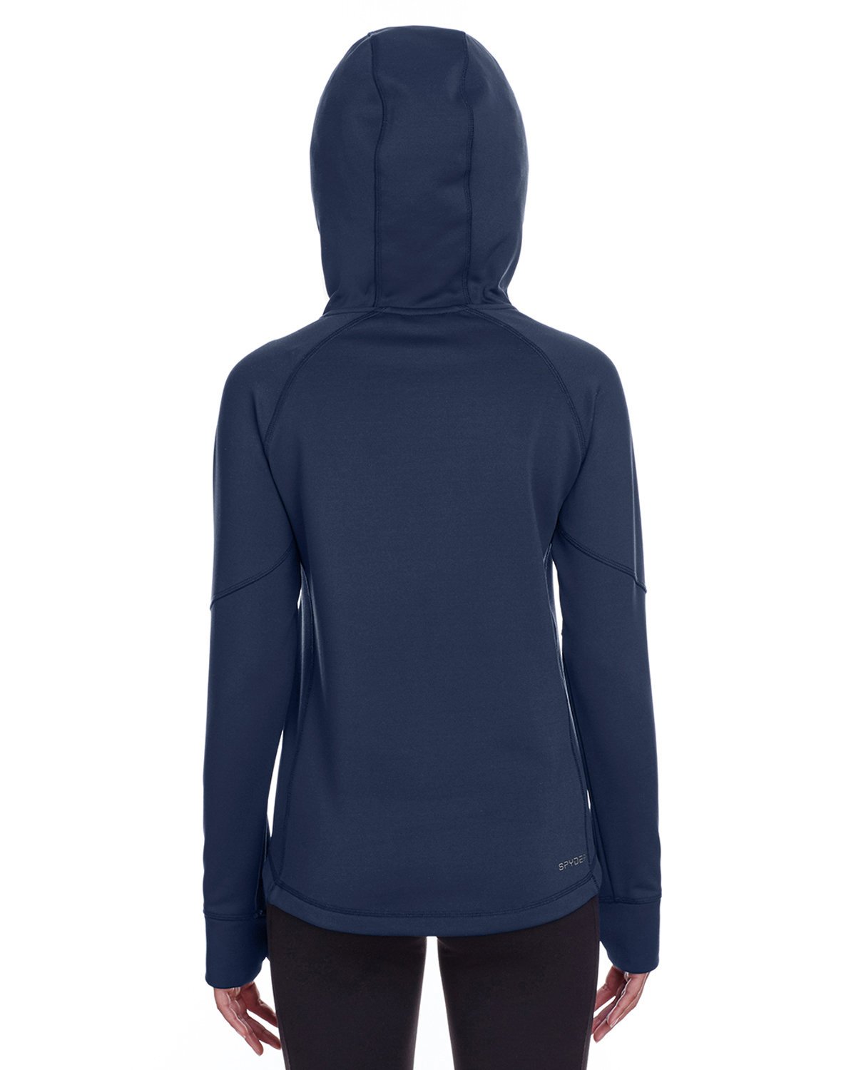 92% polyester, 8% spandex power fleece; Four-way stretch fabric; Thumb holes for comfort; Matte tape at pockets; Spyder branding on back right hem; Modern fit