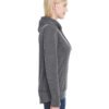 8 oz., stretch & sueded triblend terry; 51% rayon, 43% polyester, 6% elastine; 4-way stretch fabric withstriped loop back yarns; Scuba neckline with hidden snap button placket; Set-in sleeves & pouch pocket