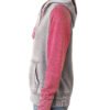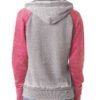 7 oz. 55% cotton, 45% polyester burnout fabric; Acid-washed with silicone finish; Cut “v” neckline; Contrast sleeves; Hood and waistband