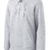 A throwback look with a lace up closure that can be personalized with school team or group colored laces. (Additional laces sold separately.) 9-ounce 65/35 ring spun combed cotton/poly fleece White lace drawcord with grey tick stitching Twill-taped neck 2×2 rib knit side gussets cuffs and hem with spandex Front pouch pocket*Please note: This product is transitioning from woven labels to tag-free labels. Your order may contain a combination of both labels