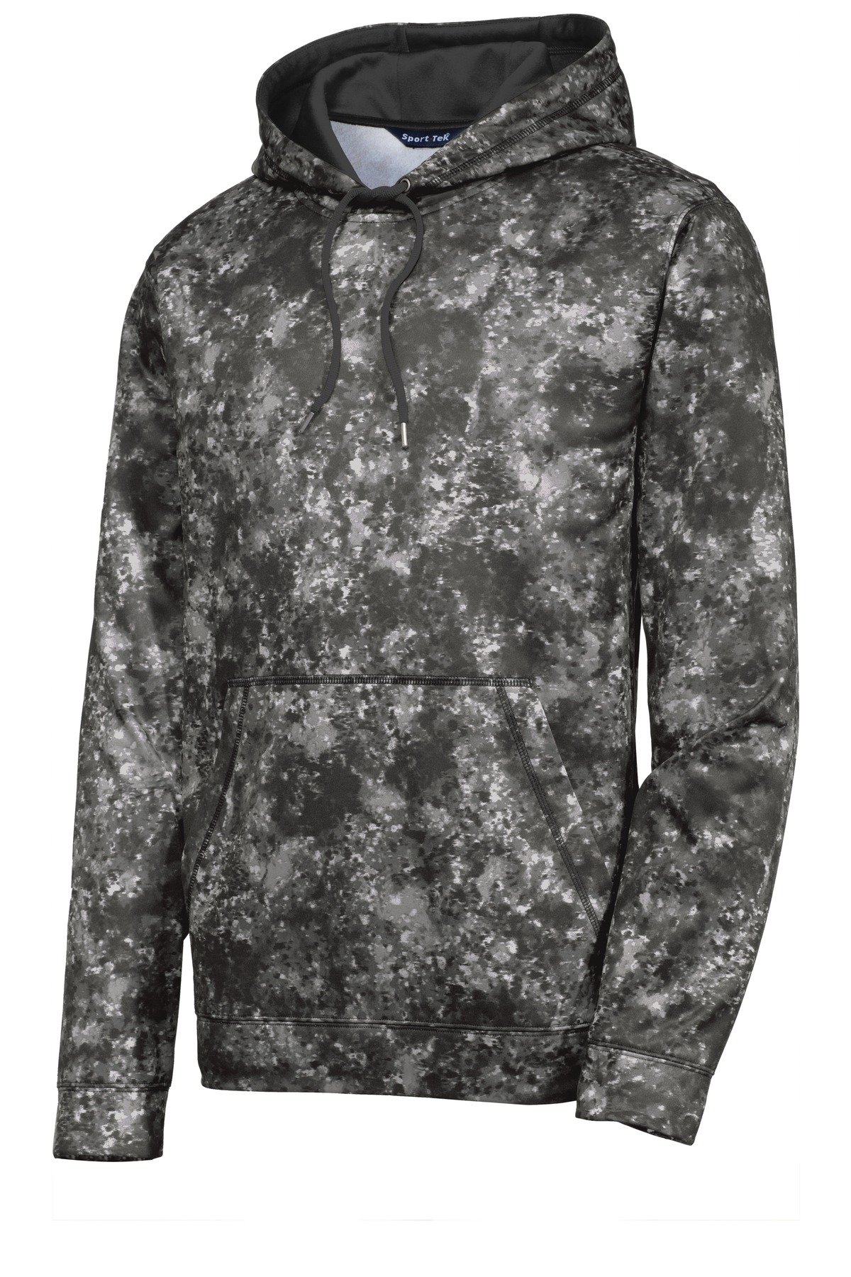 With its allover Mineral Freeze sublimated print this moisture-wicking pullover combines a natural granite look with high-tech performance. 5.5-ounce 100% polyester Anti-static Three-panel hood Solid self-fabric hood lining Solid dyed-to-match drawcords with metal tips Taped neck Self-fabric cuffs and hem Front pouch pocket*Please note: This product is transitioning from woven labels to tag-free labels. Your order may contain a combination of both labelsDue to the nature of 100% polyester performance fabrics special care must be taken throughout the printing process.