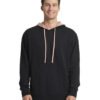 5.3 oz., 30 singles; 60% combed ring-spun cotton, 40% polyester French Terry fleece; Note: The Polyester content is transitioning to Recycled Polyester. Mixed inventory may occur.; Jersey-lined hood with matching drawcord; Metal eyelets; Contrast 3/8″ back neck binding; 1×1 ribbed cuffs and waistband; Side seam; Tear away label; Regular fit; Nothing says athleisure than this classic look that provides ultimate comfort; Cotton heavy face to provide ease of printability and breathability; Part of the Beach Fleece collection, keep it casual cool with laid-back apparel; Next Level Apparel has a recycling program for all fabric waste collected from the cutting process. All fabric scraps are sent to a recycling company that cleans and processes them to be used for cushion filling, rugs, etc. To date, 24.3M pounds of fabric have been recycled.