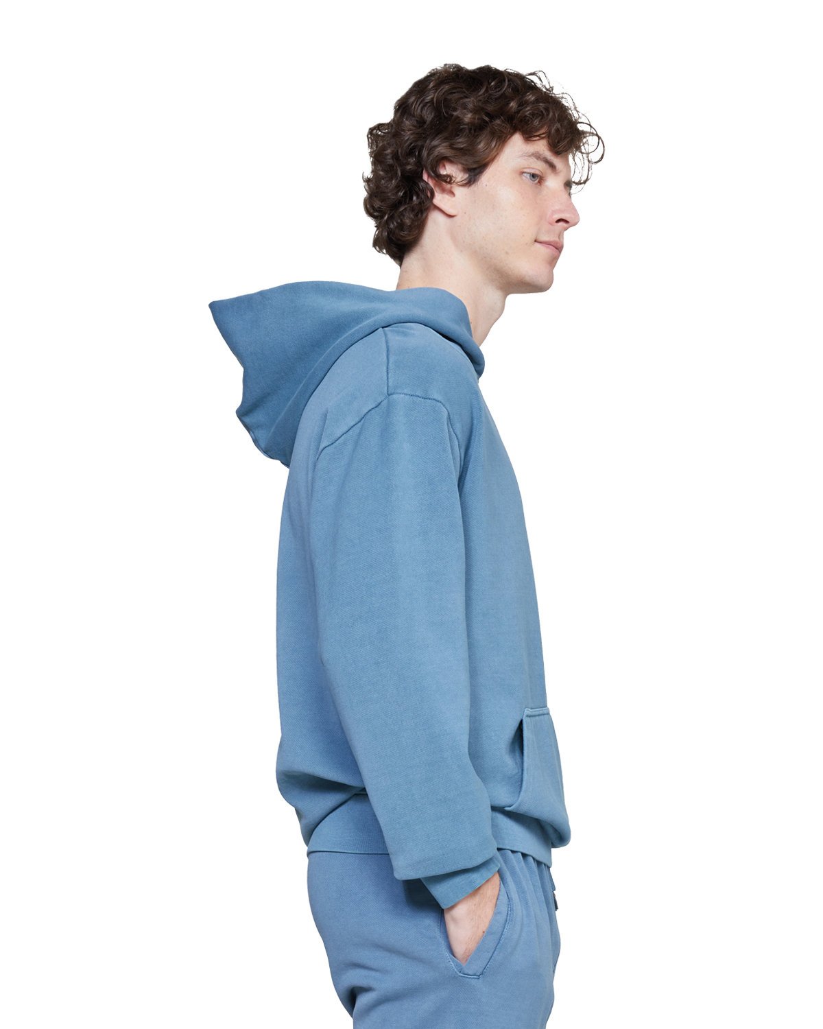 10 oz., 80% cotton, 20% polyester fleece; 100% cotton face; Oversized fit, three-end heavyweight pigment-dyed fleece; All colors are pigment-dyed except Black and White; No drawcords; Two-panel hood and double-needle topstitch on all seams; 1×1 ribbing at cuff and waistband; Tear away label