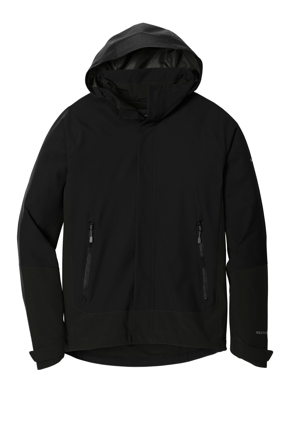 Two element-fighting WeatherEdge 5K/5K fabrics come together in this jacket for highly waterproof breathable performance. Fully seam-sealed this jacket also features an exclusive StormRepel durable water-repellent (DWR) coating for additional weather protection. Four-way stretch for easy mobility. Adjustable hood with locking drawcord waterproof front molded zippered pockets adjustable tab cuffs with hook and loop closures.Decoration access pocket. Adjustable locking drawcord hem. Contrast Eddie Bauer and WeatherEdge logos heat transfers on left sleeve. Made of 94/6 poly/spandex and 92/8 poly/spandex.