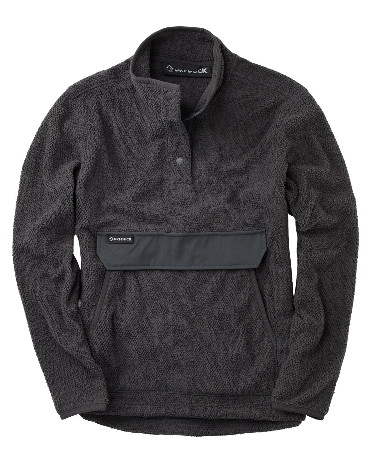 100% polyester, 7 oz. poly sherpa Mountain Fleece; 90% polyester, 10% spandex dewspo trims; UPF 50+ sun protection; Anti-pill exterior and interior to ensure longevity; Anti-static finish; Three-snap placket; Stretch binding at collar, cuffs and pocket; Open bottom hem; Front pouch pocket and top-entry flap pocket with hook and loop closure