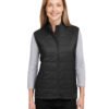 Stretch Knit: 63% polyester, 33% rayon, 4% spandex, 315 grams; Quilted Nylon: 100% nylon, 35 grams; Fill: 100% recycled polyester, 60 grams; Sleek low-profile mock-neck; Center front coil zipper, internal draft flap; Debossed Spyder neck tape & internal locker loop; Strategically placed stretch panels for mobility; Stylized front and back seams; Secure zip hand pockets with phone and coin sleeves; External side drop-in pockets; Iconic reflective Bug logo at back neck; High definition rubberized Spyder wordmark at zipper guard; Global Recycled Standard Certified