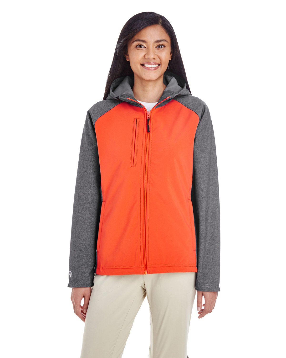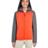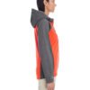 96% polyester, 4% spandex bonded to brushed jersey; Sleeves, hood and panels have the Tech Print pattern detail; Adjustable hood; Adjustable drop tail hem with hidden drawcord; Dual front and chest zippered pockets; Dual inside pockets