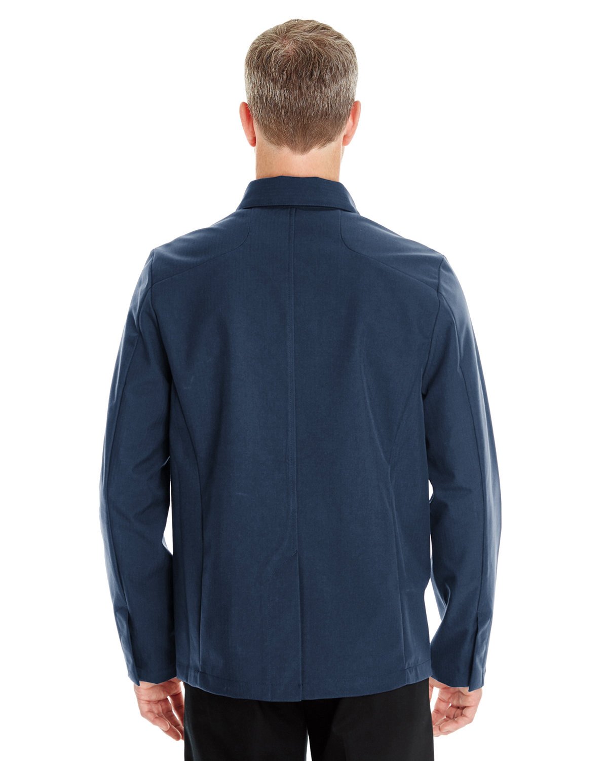 8.5 oz/yd² / 295 gsm, 3-Layer 100% polyester two-tone melange bonded to 100% polyester jersey with inner membrane; 8,000 mm waterproof rating; 800 g breathability rating; Fold-down collar with collar stand; Inside storm placket; Center front reverse coil zipper with semi-autolock slider; Center back vent at hem; Concealed chest pocket; Inside security pocket; Concealed lower pockets with rivets; Storm flap with hidden metal snaps