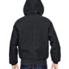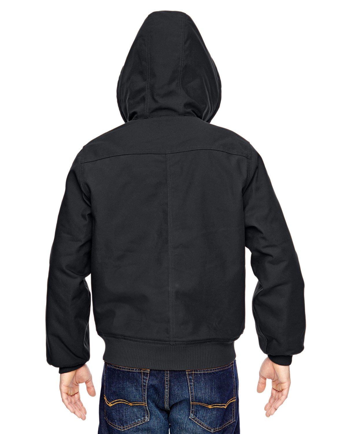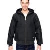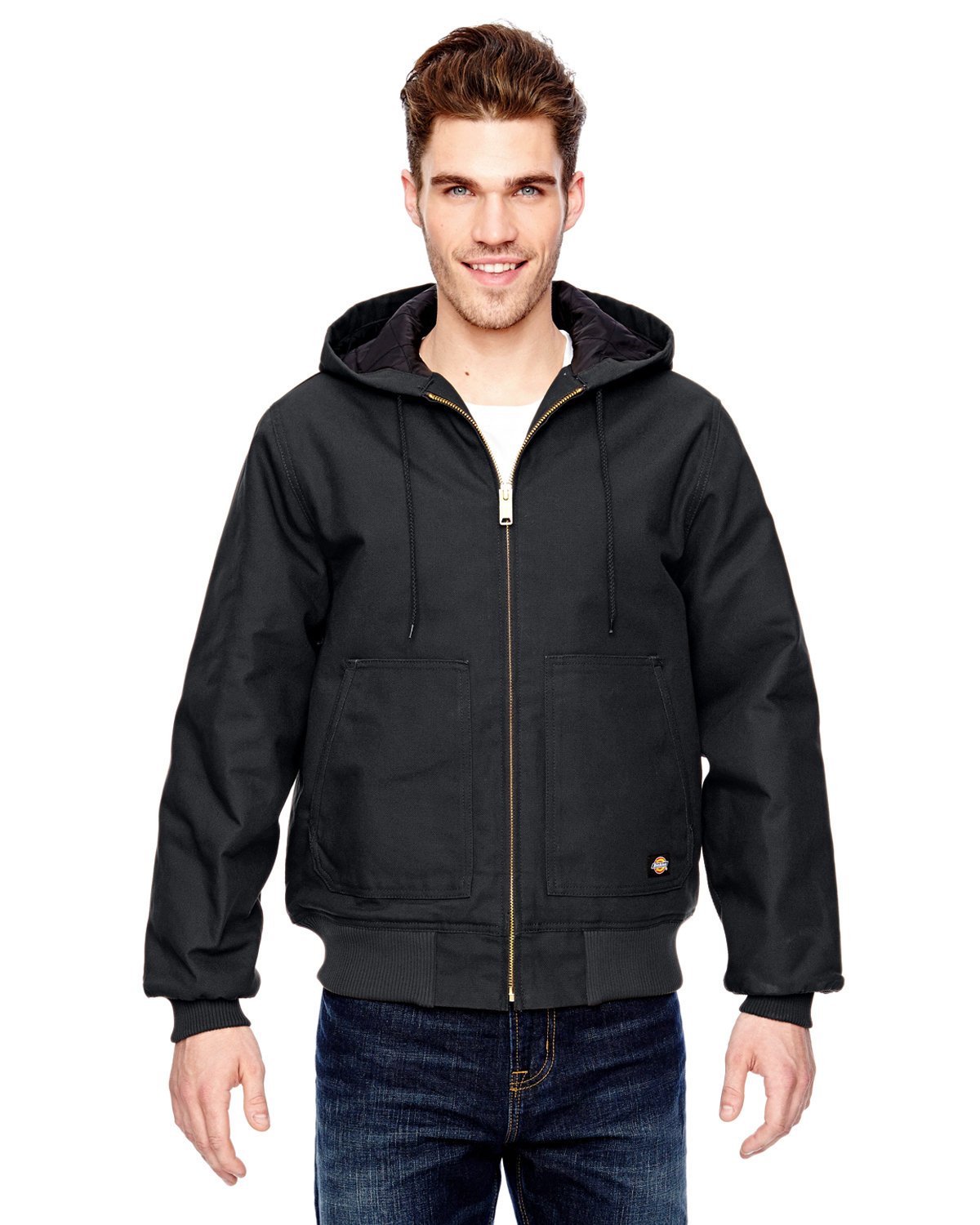 10 oz., 100% cotton; 6 oz. nylon lining quilted to polyfill; durable water-repellent (DWR) finish; water-resistant; three-piece lined hood with drawcord; Dickies products are guaranteed for life; heavy-duty brass zipper; extended sizes available for drop ship; rib knit cuffs and hem; interior pocket