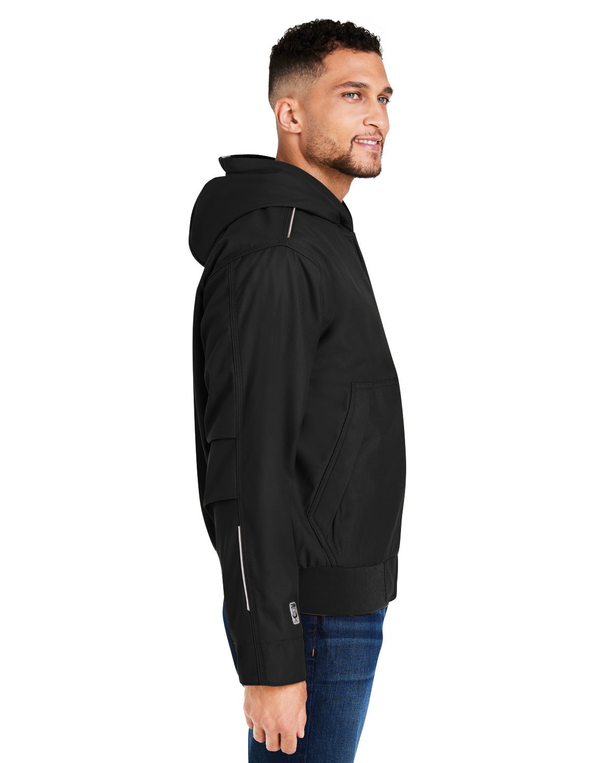 7 oz., 100% polyester, GrizzlyTec 2-way stretch performance canvas; 3M Thinsulate insulation for superior warmth without bulk; GrizzlyTec performance features: abrasion-resistant, water-resistant, windproof, and heat-retaining; Diamond-quilted, nylon-lined body and sleeves for easy on and off; Storm Shield Level 2 for steady rain; Triple-needle stitching to reinforce high-stress areas; Heavy-duty, YKK metal zipper with easy-grab pull; Three-piece hood for contoured fit with interior adjustable cord locks; 3M reflective trim at shoulders, hood, and forearms; Articulated elbows to prevent sleeve ride-up; Rib knit storm cuffs and waistband with 6 rows of spandex for memory retention; Exterior reverse welt hand pockets with snap closure ; Interior cell phone pocket with hook and loop closure ; Interior patch pocket with hook and loop closure; Decoration access at wearers left chest