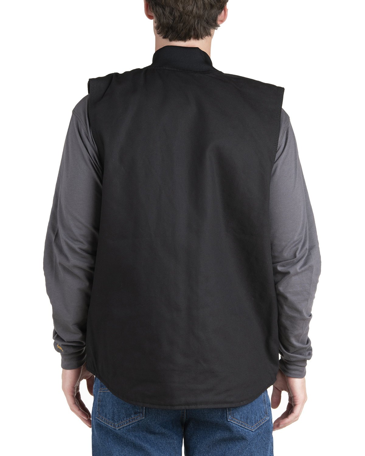 10 oz., heavy-duty cotton duck; Heavyweight quilt-lined taffeta; Water repellent finish; Full-cut arm openings for maximum comfort; Extra large front patch pockets; Three inside pockets; Extended back for extra warmth