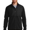 PERFORMANCE HYBRID WATER-RESISTANT WIND-RESISTANT 100% poly woven shell bonded to a 100% poly knit back with a laminated film insert for wind and water resistance 100% poly woven quilted overlays Core insulation Zip-through cadet collar Reflective OGIO heat transfer label for tag-free comfort Tonal rubber O at back right shoulder Rubber O at back left panel Reverse coil zippers Rubber-wrapped O zipper pull OGIO metal snap Set-in sleeves Tonal rubber O at left sleeve OGIO snap closure cuffsDecoration access pocket Front zippered pockets