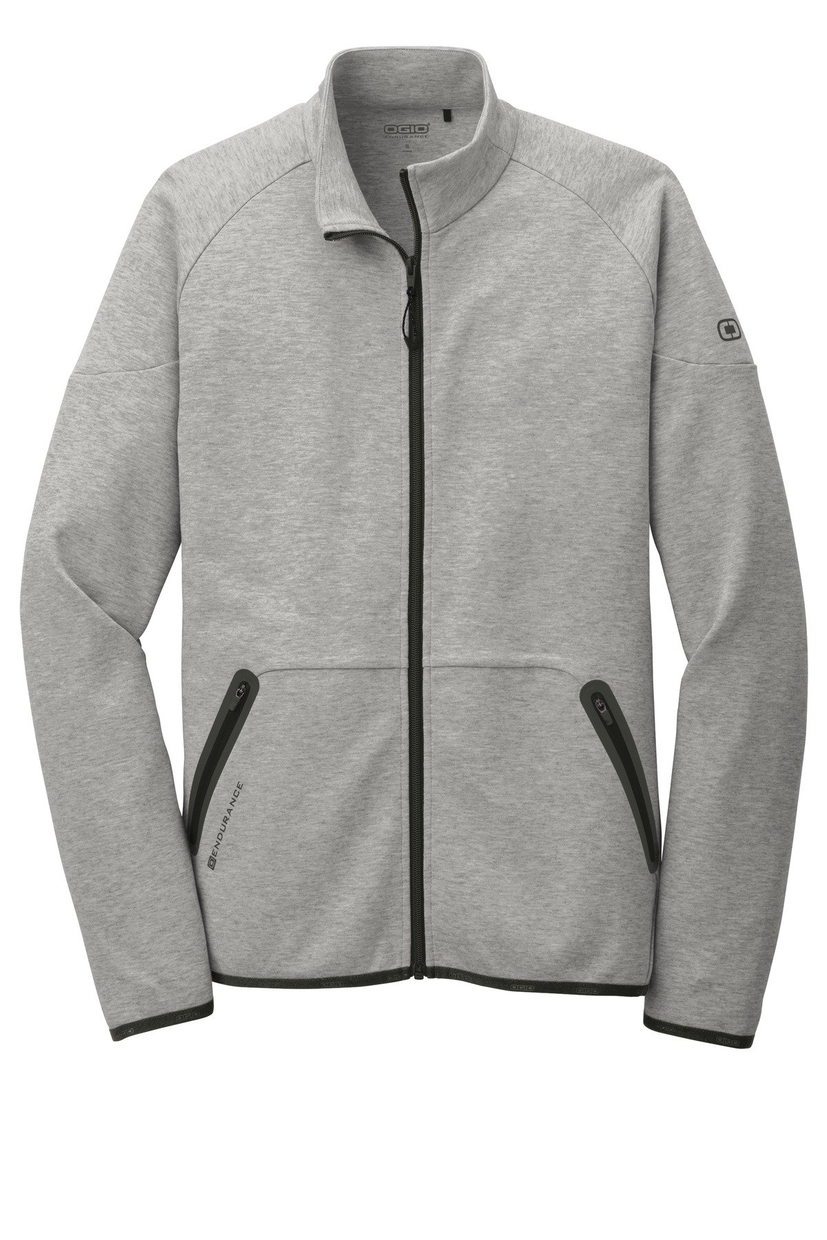 COTTON-RICH SOFTNESSSTAY-COOL WICKINGLAYERABLE WARMTH8.1-ounce 64/36 cotton/poly flatback knit OGIO heat transfer label for tag-free comfort Zip-through collar Exposed coil zipper with molded cord pull Stacked O heat transfers at center back Welded front zippered pockets with locking pulls O heat transfer at right pocket Raglan sleeves with welded articulated elbows O heat transfer at upper left sleeve OGIO binding at cuffs and hem Slight drop tail hem