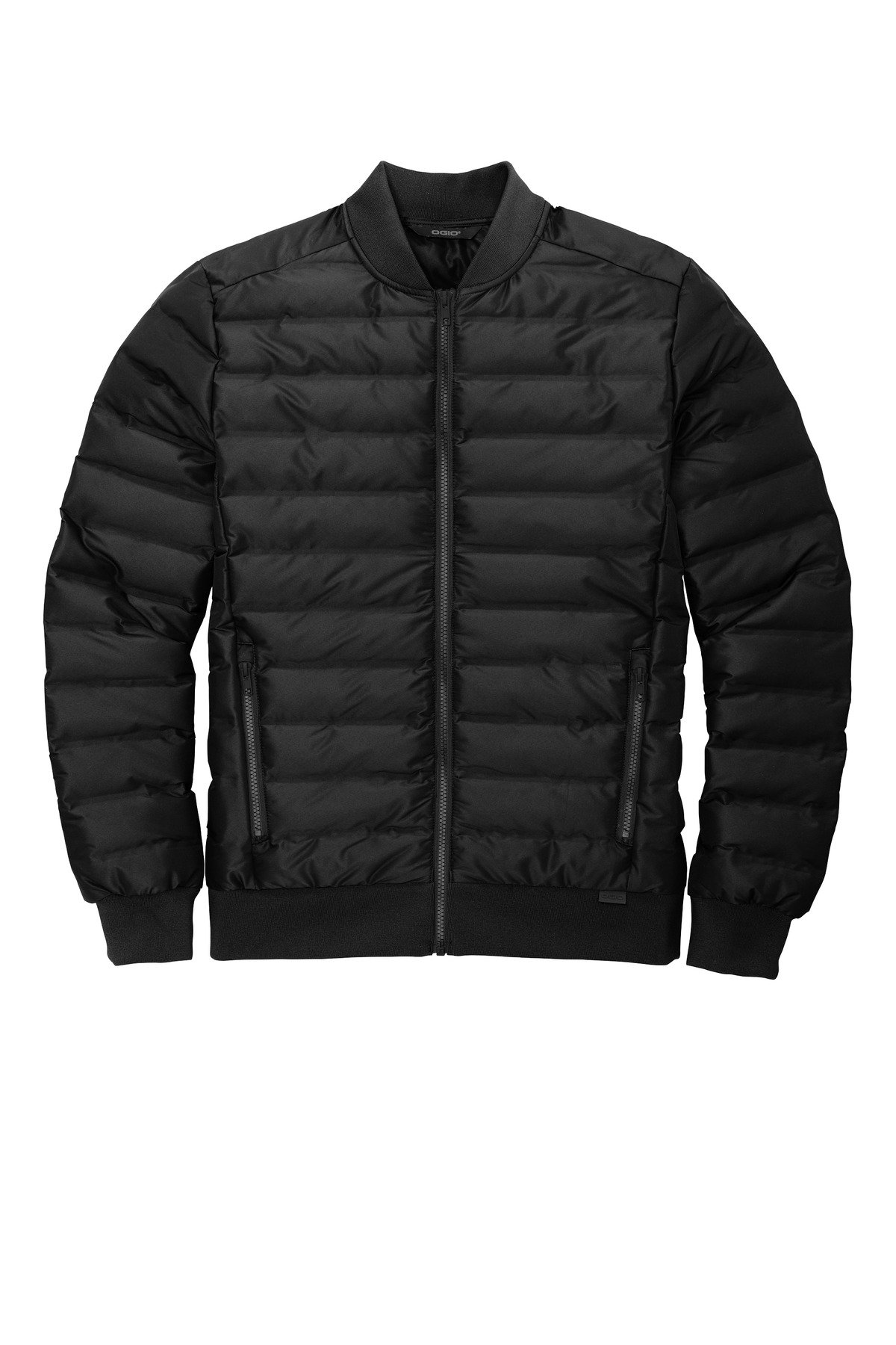 Welded baffles and non-traditional zippers give this street-ready puffy jacket a technical look and feel. 100% poly with stretch and durable water-repellent (DWR) finish 100% nylon lining Poly fill insulation Rib knit collar cuffs and hem Molded zippers Mitered OGIO back neck label OGIO rubber tab on front left hem