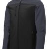 An attached hood and bold colorblocking give this well-priced wind-resistant water-repellent soft shell extra rain-shielding protection and strong style.100% polyester woven shell bonded to a water-resistant film insert and a 100% polyester microfleece lining 1000MM fabric waterproof rating 1000G/M2 fabric breathability rating Adjustable hood with locking drawcord to customize fit Reverse coil zippers Interior storm flap with chin guard Zippered right chest pocket Front zippered pockets Open hem with locking drawcord