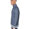 9.25 oz., 55% cotton 45% polyester heathered fleece; 1×1 yarndyed cuffs, waist and inside collar; 1/4-zip placket with off-white zipper tape; Set-on pouch pocket