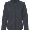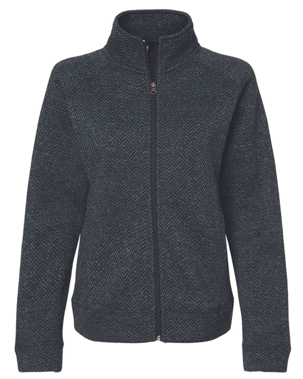 9.75 oz.; 100% polyester sweater knit; Herringbone texture throughout; Full-zip placket; Princess seams with side welt pockets; Self-fabric cuffs and waistband; Tear away label