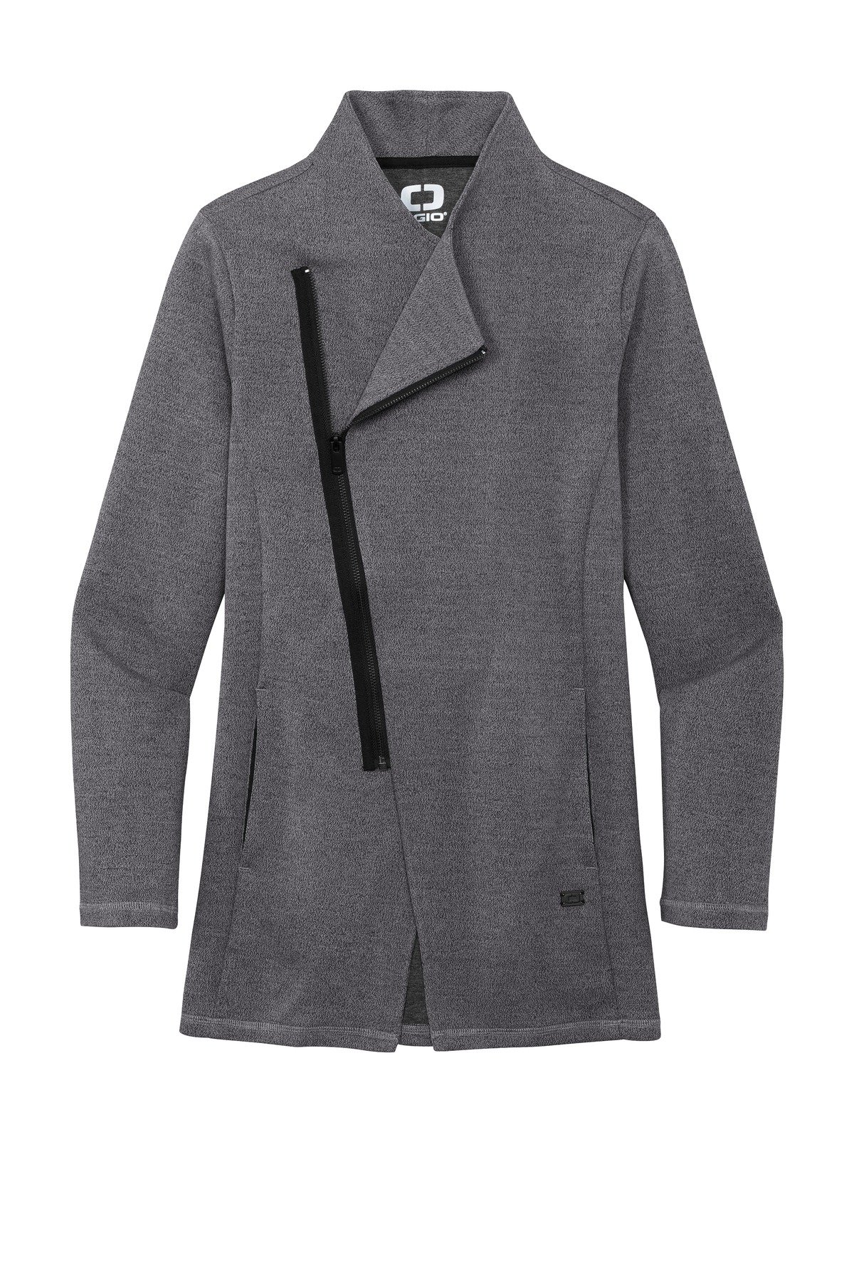 Transition easily between a corporate look and afterhours style in this double-knit piece that has OGIO edge. 11.4-ounce 52/45/3 cotton/poly/spandex fleece OGIO heat transfer label for tag-free comfort Black grosgrain detail at zipper Asymmetrical metal molded zipper with debossed O on zipper pull Matte black debossed O metal badge on front left hem Longer tunic length
