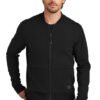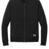 Stretch your layering options with this modern full-zip that was inspired by the classic bomber jacket.8.5-ounce 87/13 cotton/spandex knitLightly brushedOGIO heat transfer label for tag-free comfortBack locker loopBaseball-style rib knit collarRib knit collar cuffs and hemCenter front reverse coil zipper with rubber OGIO pullFront flange across bodyFront exposed coil zippered hand pocketsBlack reflective O heat transfer on front left hem