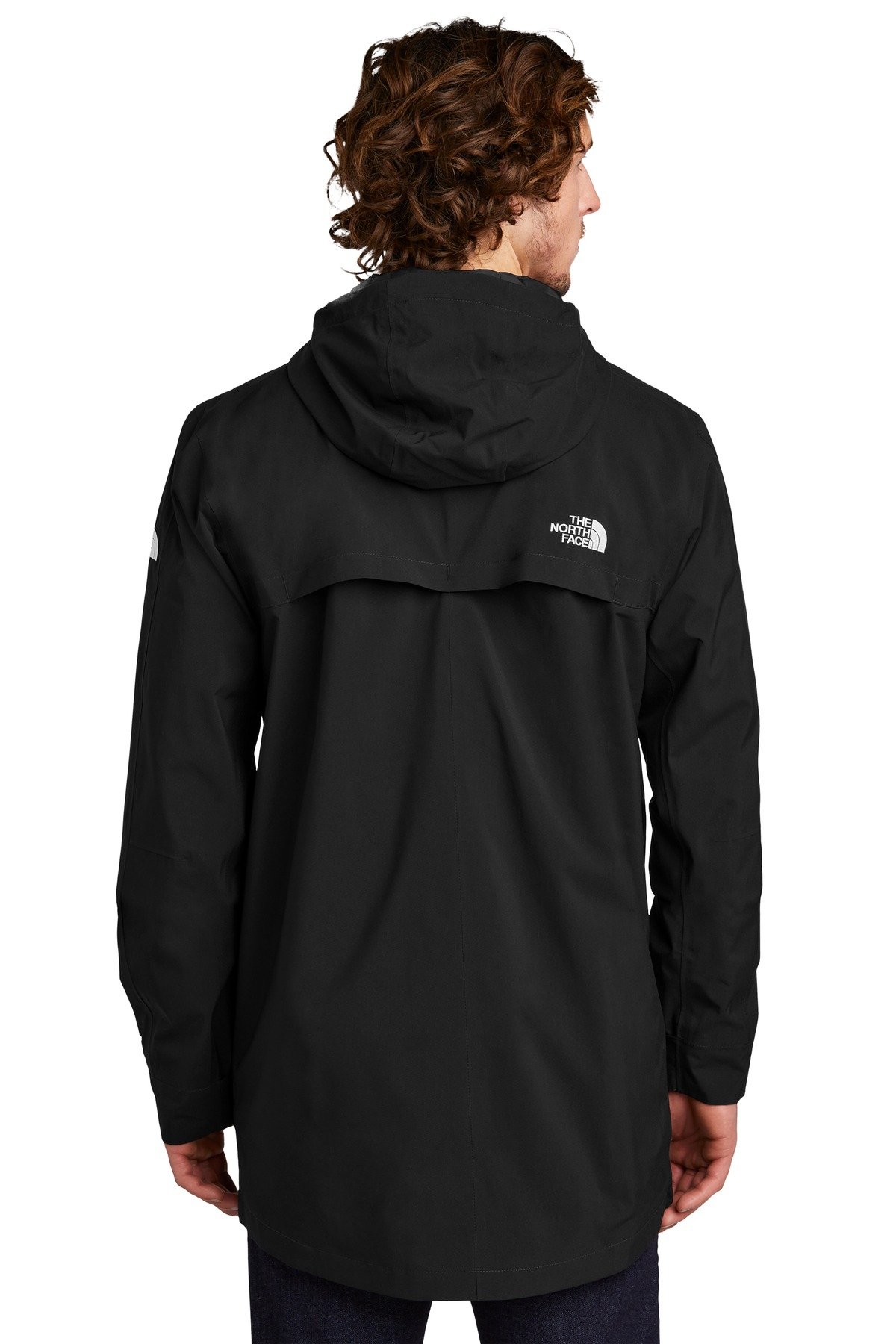 Shell: 75D 116 g/m2 DryVent -100% polyester; durable water-repellent (DWR) finish and lining Lining: 50D 116g/m2 100% recycled polyester Waterproof breathable DryVent shell Storm flap with Velcro closure covers front zipper Interior media pocket 3-piece hood Zippered hand pockets Adjustable Velcro cuffs Contrast embroidered DryVent logo at left cuff Contrast embroidered The North Face logo on left sleeve and right back shoulderThe North Face products have decoration requirements that require special handling procedures and may need additional time to fulfill. BENEFITSWATERPROOF: Impenetrable moisture barrier to guarantee dryness.WIND PROTECTION: Limiting air penetration reduces the wind chill factor. RECYCLED CONTENT: Made from post-consumer recycled content.