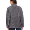 7.5 oz., 100% polyester multicolored shag; Unconcealed nylon zipper; Stand-up self-collar; Sideseam welt pockets; Single needle stitched throughout; Tear away label