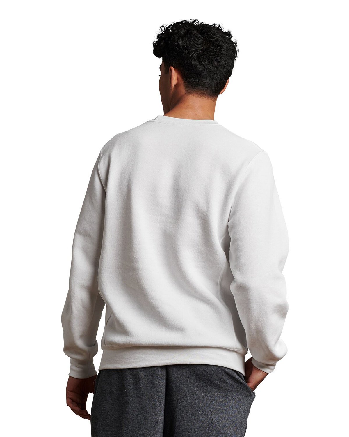 9.3 oz., 50% cotton, 50% polyester; Oxford: 48% cotton, 52% polyester; Dri-Power® moisture-wicking technology; Medium Grey Heather coverseam tape; Made with sustainably sourced USA grown cotton; Rib knit collar, cuffs and waistband ; V-patch detail at front neck; Relaxed fit; Eagle R logo flagtag at waistband; Russell Athletic styles are manufactured using sustainable protocols which are measured and reported annually by Fruit of the Loom, Inc.; Russell Athletic styles are manufactured with the commitment to enriching lives for people and communities which is measured and reported annually by Fruit of the Loom, Inc.