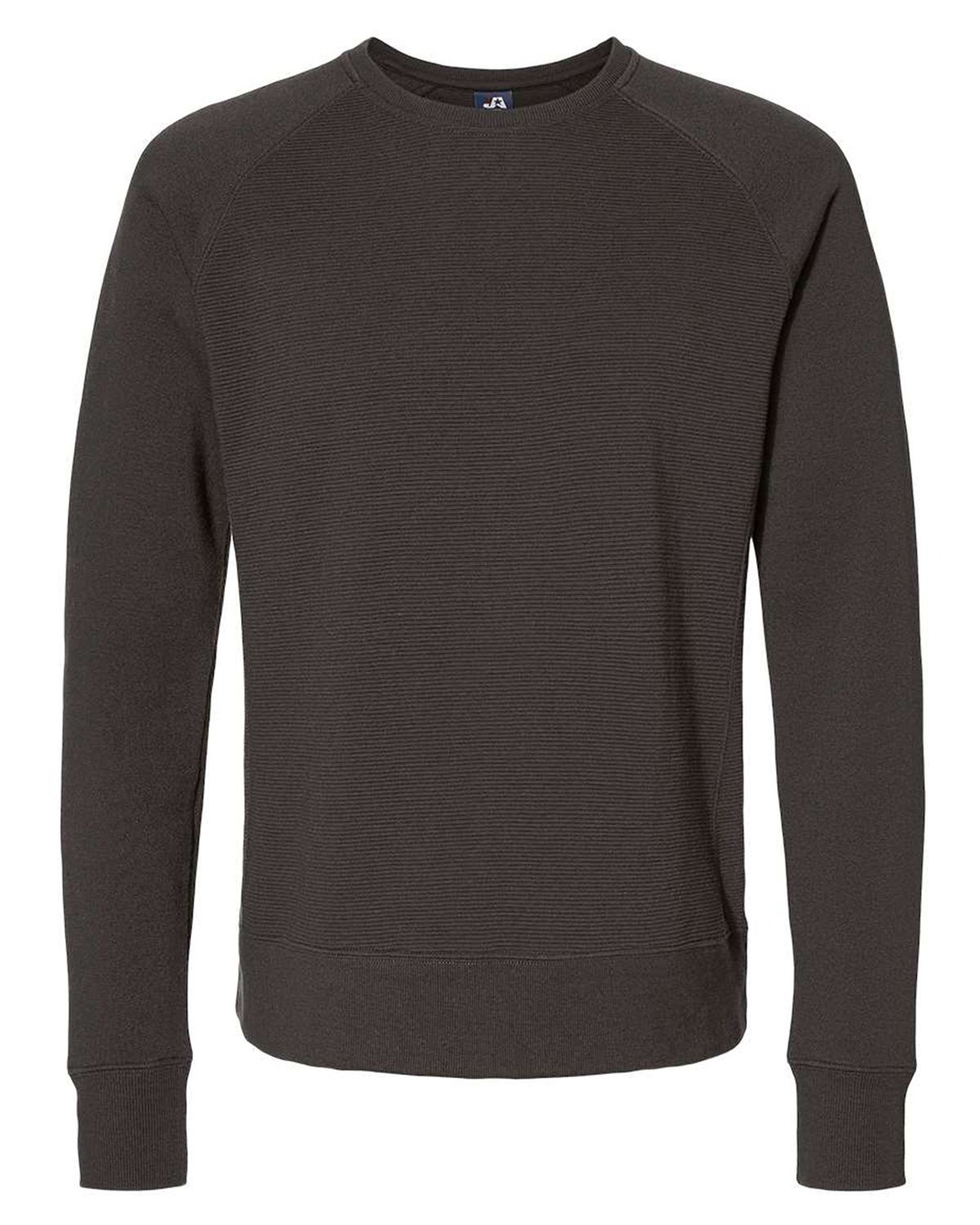 8.25 oz., 55% cotton, 44% polyester knit ottoman fleece; Horizontal stripe texture throughout fabric; Air-spun fleece sleeves; Twill tape back of neck tape; 2×2 rib collar, cuffs and waistband; Raglan sleeves; Self fabric side gussets with no sideseam; Tear away label