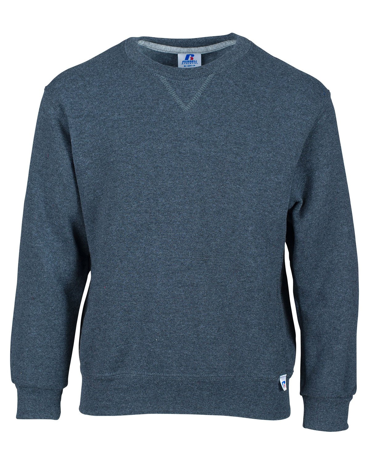 9.3 oz., 50% cotton, 50% polyester; Oxford: 48% cotton, 52% polyester; Pre-shrunk 3-end fleece; Dri-Power® moisture-wicking technology; Made with sustainably sourced USA grown cotton ; Medium Grey Heather coverseam tape; V-patch detail at front neck; Eagle R logo flagtag at waistband; CPSIA compliant: Russell Athletic® youth products and packaging comply with the tracking label requirements of the Consumer Product Safety Improvement Act