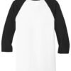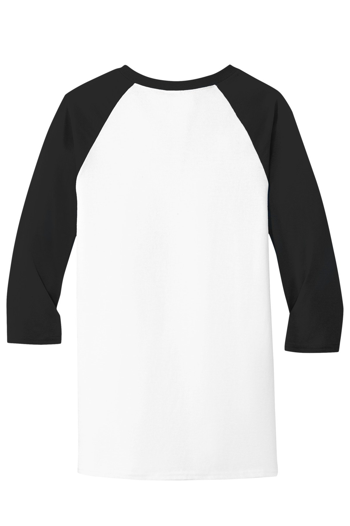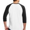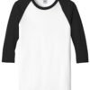 5.3-ounce 100% cotton 90/10 cotton/poly (Sport Grey/Black) Tearaway label Contrast color set-in collar and 3/4 raglan sleeve Single-needle topstitched back neck Double-needle sleeve hems and bottom hemClassic fit tubular body