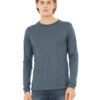 4.2 oz., 32 singles; 52% airlume combed and ringspun cotton, 48% polyester; Athletic Heather, Black Heather: 90% Airlume combed ringspun cotton, 10% polyester; Pre-shrunk; Retail fit; Ribbed cuffs; Side-seamed; Tear away label ; Sustainably produced; WRAP certified and FLA participating company; Bella+Canvas uses sustainable manufacturing processes with blue sign certified dyes, efficient dye houses that adhere to the state of Californias EPA regulations around waste water treatment and usage, and cutting facilities in Los Angeles that run on partial solar power with comprehensive recycling programs for paper waste and fabric scraps.