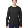 4 oz., 20 singles; 50% cotton, 50% recycled polyester; Bound ribbed neckband; Tonal stitching on neck, sleeves and hem; Blindstitching on sleeve and hem; Tear-away label; Made in a WRAP-Certified factory; Classic Fit; “A-” list status from CDP (Carbon Disclosure Project); Energy Star Partner of the Year (14 consecutive years); Every piece of Alternative apparel purchased from our company qualifies for Hanes4Education