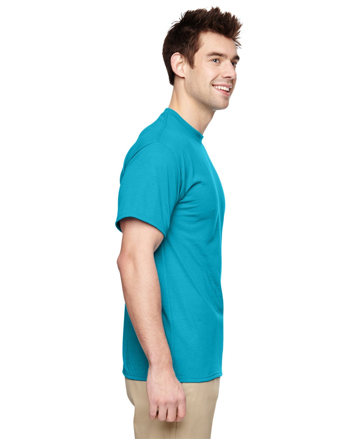 5.3 oz., 100% polyester; anti-microbial and odor control; wicks moisture away; Superb breathability and hand; double-needle coverstitching on front neck; Ideal for sublimation printing ; Seamed 1×1 rib collar; double-needle stitching on sleeve and bottom hem; Shoulder-to-Shoulder taping; seamless body; Tear away label; Jerzees styles are manufactured using sustainable protocols which are measured and reported annually by Fruit of the Loom, Inc.; Jerzees styles are manufactured with the commitment to enriching lives for people and communities which is measured and reported annually by Fruit of the Loom, Inc.