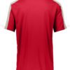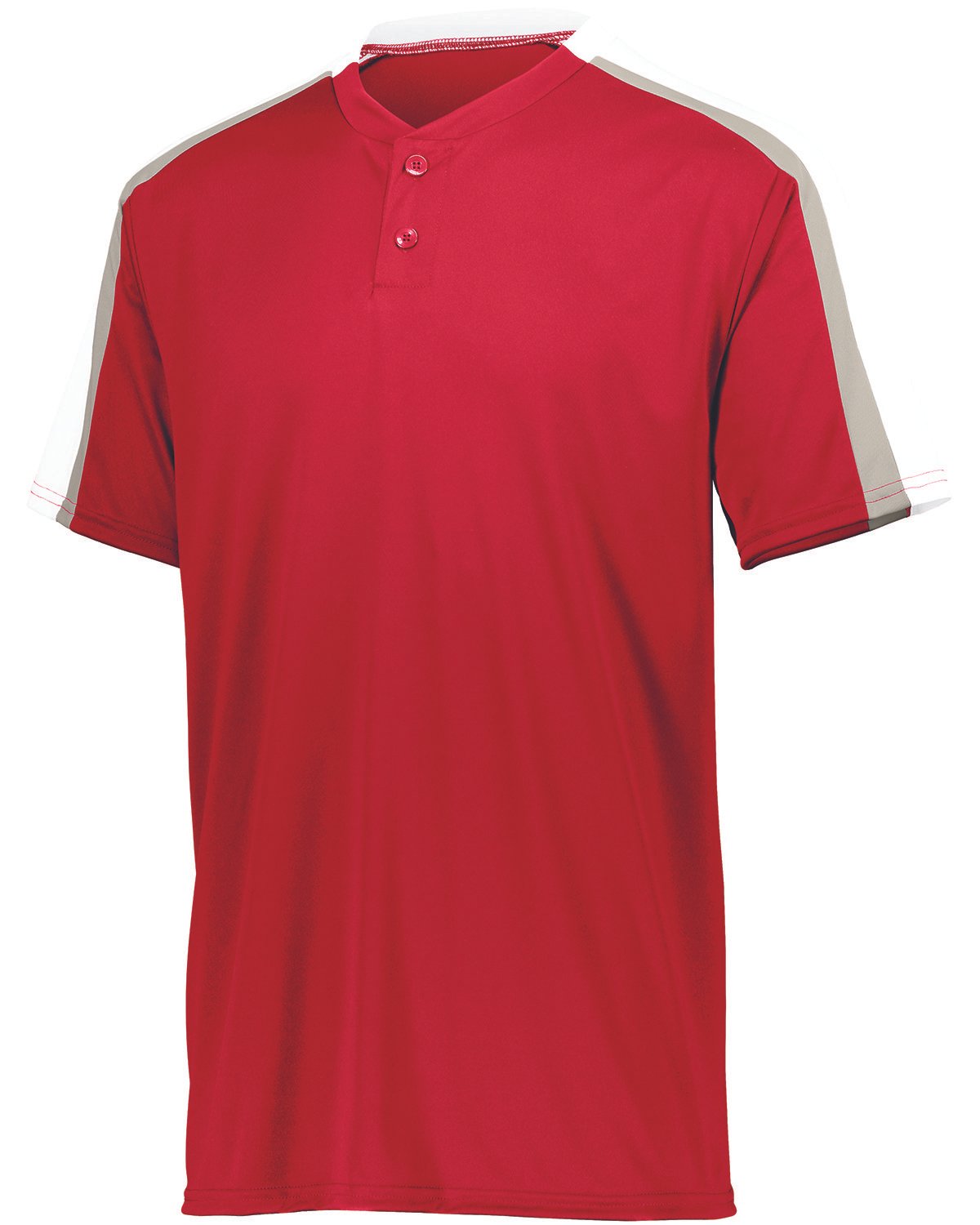 100% polyester smooth knit with true hue technology on front and back panel; Ture hue technology prevents dye migration; 92% polyester/8 spandex wicking pinhole mesh underarms; Wicks moisture; Pad print label; Two-button placket; Contrast color inserts; Raglan sleeves; Longer length