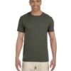 4.5 oz., 100% preshrunk ringspun cotton jersey; Sport Grey and Antique colors: 90% cotton, 10% polyester; Graphite Heather: 50% cotton, 50% polyester; All other Heather colors: 65% polyester, 35% cotton; Seamless double-needle 3/4″ collar; Taped neck and shoulders; Rolled forward shoulder; Double-needle sleeve and bottom hem; Tubular fit for minimal torque; Tear away label; Gildan’s manufacturing process utilizes 45% renewable energy; Gildans Community Investment Program supports education, the environment, humanitarian aid and active living in the communities we do business in