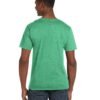 4.5 oz., 100% ringspun cotton; Sport Grey is 90/10; Dark Heather, Heather (Irish Green & Purple) are 65/35; Deluxe 30 singles Softstyle® yarns; Mitered V-neck; Double-needle stitched sleeves and bottom hem; Sport Grey is 90/10; Dark Heather, Heather (Irish Green & Purple) are 65/35; Seamless double-needle collar; Taped neck and shoulders; Tear away label; Gildan’s manufacturing process utilizes 45% renewable energy; Gildans Community Investment Program supports education, the environment, humanitarian aid and active living in the communities we do business in