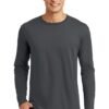 This long sleeve tee looks perfect by itself or layered. 4.3-ounce 100% ring spun combed cotton 32 singles 1×1 rib knit neck Shoulder to shoulder taping Open hem sleevesPlease note: This product is transitioning from woven labels to tear-away labels. Your order may contain a combination of both labels.